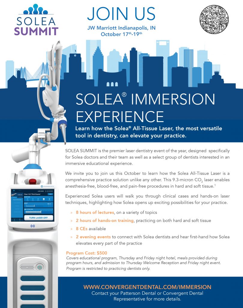 We invite you to join us this October to learn how the Solea All-Tissue Laser is a comprehensive practice solution unlike any other. This 9.3-micron CO2 laser enables anesthesia-free, blood-free, and pain-free procedures in hard and soft tissue.